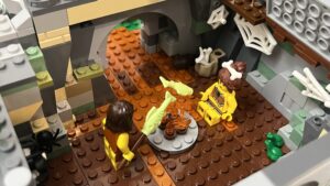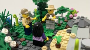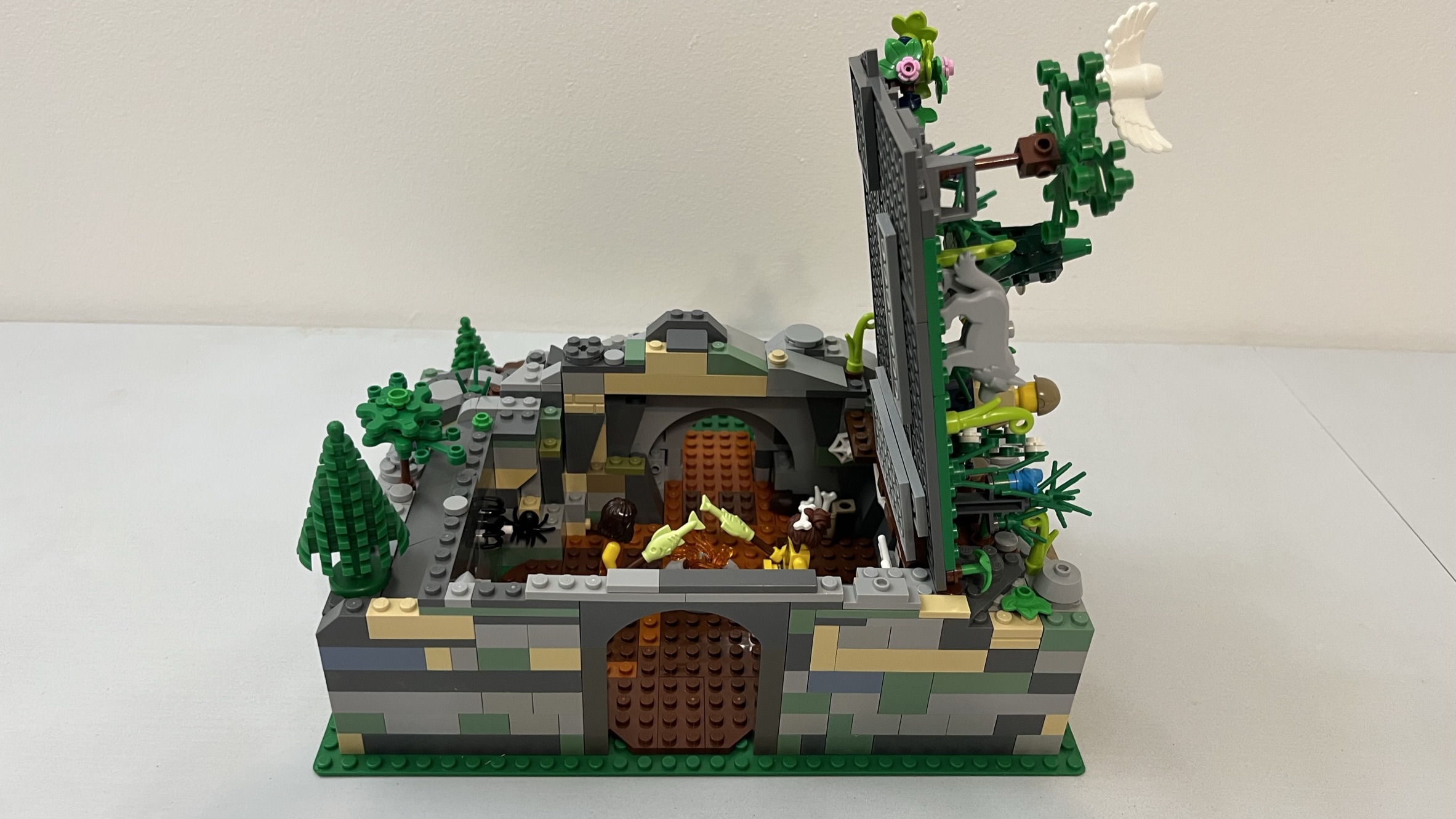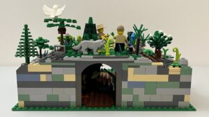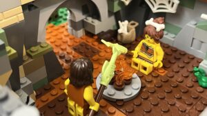 “I’ve always enjoyed Lego but now that my nephews are old enough to build with me, it’s given me an excuse to bring out my childhood Lego bin and buy a few sets for myself. I’ve had the cave-people minifigures on my desk as decoration for a while and I thought that they would be perfect for a model. I wanted to share Tse’k’wa at my favourite time of year and with some of the things that make it special to me, mainly the stories and language I’ve learned from working with different Dane-zaa knowledge holders.” – Alyssa Currie.